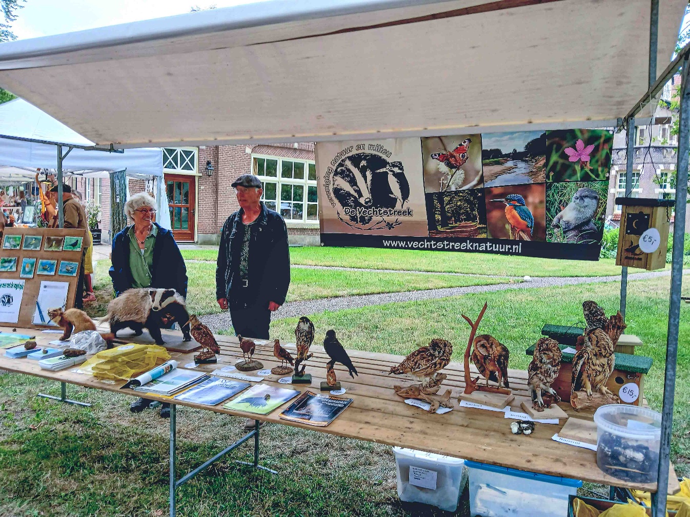 Door onze attributen in de zin van opgezette vogels, een opgezette das en boommarter trokken we veel bekijks. Wel was nog even discussie over de marter: was het nu een boom- of steenmarter?