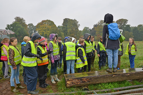 De jeugdige deelnemers aan 'Expeditie Ommermars' hadden op wat beter weer gehoopt, maar de ideeën en het enthousiasme waren er niet minder om. Terwijl het gestaag bleef regenen gingen de kinderen van groep 7 en 8 van basisschool Het Palet het veld in om zich te oriënteren op de mogelijkheden van een leuke invulling voor het gebied de Ommermars. Gewapend met een grondboor - om te kijken wat er allemaal in de grond zit, rubber handschoenen - om koeienpoep te analyseren - en verrekijkers - om vogels (die vanwege de regen waarschijnlijk een goed heenkomen hadden gezocht) en koeien te observeren - gingen ze op pad. De koeien bleken uitstekend te bekijken zonder verrekijker: ze kwamen zó dichtbij dat sommige kinderen dat haast een beetje té spannend vonden.