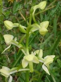 Op een brandnetel vinden we tientallen rupsen van de dagpauwoog. Ook vinden we de met tijm begroeide heuvels van de gele weidemier. Weer terug over het prikkeldraad komen we uit bij Dook van Gils; zij staat klaar met een tafeltje met thee, koffie en heerlijke zelfgebakken koek! Direct tegenover ons koffiemoment is een klein stukje hooiland. Henk neemt ons er mee naartoe. Hij wijst ons op een klein bloempje. Het is de Bergnachtorchis. Laat het nou de enige plek zijn waar deze orchis in Nederland voorkomt. Tenminste…….bij het aanpandige hooiland klimmen we weer over het prikkeldraad. Henk zijn dag kan niet meer stuk want ook daar staan nu diverse planten van de Bergnachtorchis te bloeien. Dit alles is bewerkstelligd door een goed maai en graas beleid op die plek. Heel bijzonder dus!