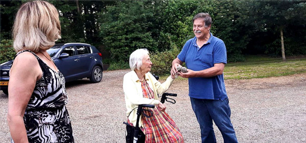 Ook de steenuiltjes uit een nestkast van controleur Annemiek van Baren, werden geringd. Annemiek heeft thuis een nestkast, waar Han eerder een, na een trauma herstelde, steenuilskuiken had bijgeplaatst. ( Han heeft thuis een kleine vogelopvang voor gewonde of verlaten vogels.) Na herplaatsing van het jong in de kast van Annemiek, werd deze prima opgevangen door de nieuwe ouders. Dit was duidelijk waar te nemen omdat Han voor herplaatsing in deze kast, het uilskuiken had geringd. Zo kon hij precies zien hoeveel de “herplaatsingsuil” was gegroeid. Het is beter dat uilen in een natuurlijke omgeving opgroeien: het is zeker niet de bedoeling dat de tijdelijk opgevangen uilen wennen aan de mens: ze moeten zodra dit kan, dus zo snel mogelijk, terug naar hun eigen leefomgeving.