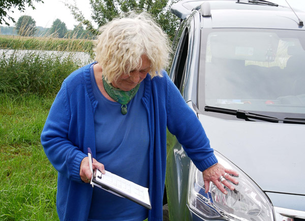 Woensdag 28 juni kon Gerbrand Groen (vrijwilliger vogelwerkgroep Natuur en Milieu de Vechtstreek) een hoogwerker lenen van de firma Stegerman uit Nieuwleusen. De paalnesten zijn dusdanig hoog dat het zonder een hoogwerker onmogelijk is de ooievaars te bereiken. Gewoontegetrouw krijgt Gerbrand assistentie van Hans Sybesma (vrijwilliger vogelwerkgroep Natuur en Milieu de Vechtstreek) .