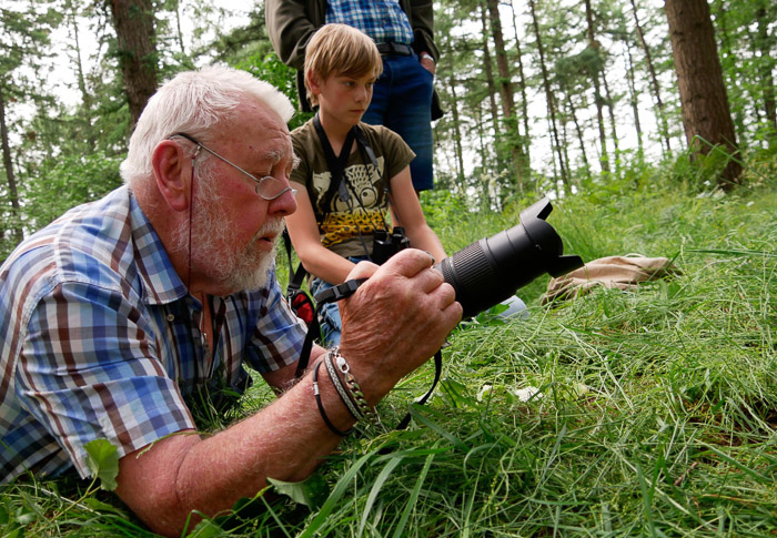 Ook Han gaat plat op zijn buik liggen om deze prachtige vogels te vereeuwigen terwijl Josh Rozema gebiologeerd toekijkt!
