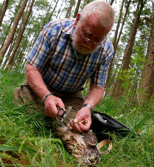 Hans en Kees Sybesma hadden een nest Haviken gespot in de omgeving van Ommen. Zodoende heeft Han Bouman op 16 juni 2018, 2 jonge vrouwtjes Haviken kunnen ringen.