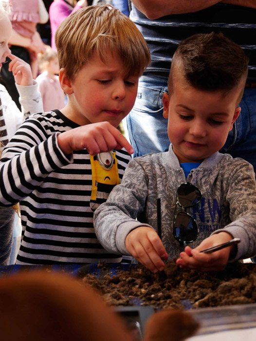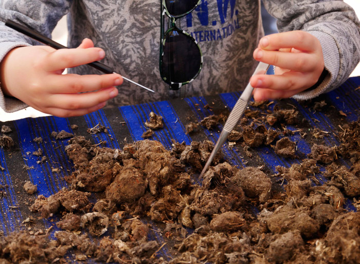 Veel kinderen waren enthousiast aan het pluizen van uilenballen!