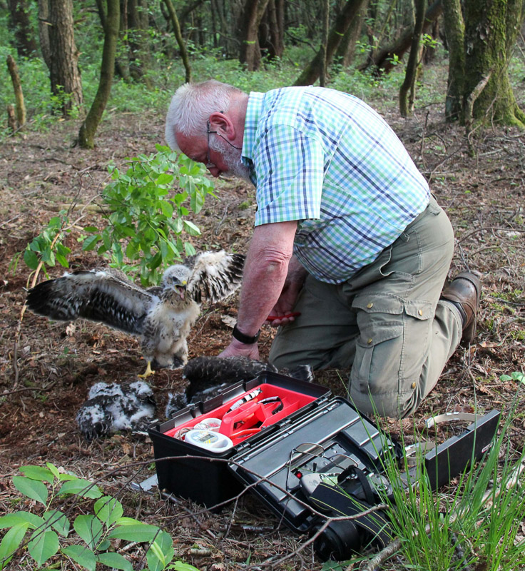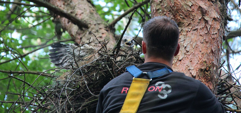 Veel Buizerds hebben jongen in de maand mei. Reeds vele jaren klimt de zeer ervaren Wim Koldewee (Nestor en vrijwilliger Vogelwerkgroep Natuur en Milieu) van de ene hoge boom in de andere om jonge roofvogels uit het nest te halen zodat ze geringd kunnen worden door Han Bouman. Ook in 2016 kwam Wim diverse keren in actie.