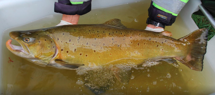 De zeeforel werd waargenomen op beelden van onderwatercamera’s bij de vispassage naast stuw Vechterweerd, tussen Zwolle en Dalfsen.