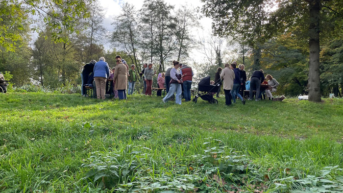 We hadden deze keer het geluk dat we de stoelen en tafels naar buiten konden brengen om heerlijk van de buitenlucht en de mooie omgeving te genieten. Watermolen Frans is één van de twee molens op de Mosbeek (de andere is Watermolen Bels).