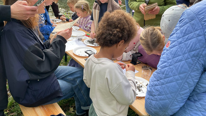 Machteld en ik nemen ook steeds een aantal opgezette roofvogels mee, vogels die uiteraard op een natuurlijke wijze zijn gestorven. De kinderen mogen dan zelf vertellen of ze de vogels herkennen en wat ze er van weten. Tijdens deze middagen leren kinderen om uilenballen (braakballen) uit te pluizen om op die manier te ontdekken wat de uil heeft gegeten, zoals botjes en haren van muizen, ratten en vogeltjes. Maar het zijn vooral muizenbotjes welke worden gevonden door de kinderen en hun ouders. Ik moet bekennen dat de ouders ook zeer actief zijn met het pluiswerk! Er waren deze keer zelfs ouders met kinderen uit Haarlem naar de Watermolen gekomen om te pluizen!