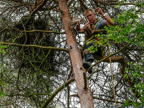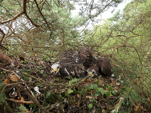 Dat er veel wespen zijn dit jaar is wel te merken wanneer je op het terras zit te eten of te drinken. Ze vormen dit jaar een heuse plaag en zorgen voor veel overlast. Een vogel die wel heel blij is met wespen is de wespendief. Deze zeldzame vogel lijkt sprekend op de buizerd, maar heeft een heel ander leefpatroon. Waar de buizerd muizen en zieke konijnen eet leeft de wespendief hoofdzakelijk van wespen en bijenlarven. De wespennesten worden uitgegraven en de raten worden er uit gehaald en opgegeten. Last van steken heeft hij niet want hij heeft een dik veren pak en wimperharen om zijn ogen te beschermen. in Nederland broeden er ongeveer vijfhonderd paartjes. Het is een trekvogel die uit zuid Afrika laat in het voorjaar aankomt in Nederland. Meestal pakt hij een oud buizerd of kraaiennest om daarin eind mei een of twee eieren te leggen. Op de Lemelerberg heeft dit jaar voor het eerst sinds 2008 weer een paartje wespendieven gebroed en met succes want ze hebben twee jongen groot gebracht. De jonge wespendieven hebben van Han Bouman een ring gekregen van het vogeltrekstation en zijn inmiddels al uitgevlogen. Ze blijven eerst nog een tijdje in de buurt van het nest om wat aan te sterken voor de lange tocht. Ze vliegen richting Zuid Afrika. De jonge wespendieven zijn pas over het tweede of derde jaar geslachtsrijp, waarna ze richting Europa vliegen om te broeden