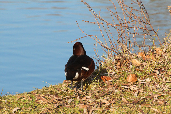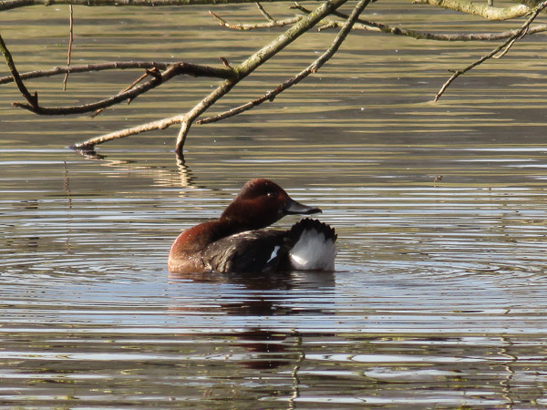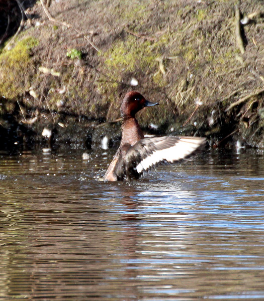 Henk Jan Bezemer vertelde me dinsdag 14 februari, tot mijn grote verassing, dat hij een Witoogeend had zien zwemmen in één van de vijvers van de Dante. De Witoogeend is namelijk een zeldzame broedvogel. Mijn reactie was dan ook voorspelbaar; snel gewapend met mijn fotocamera naar de desbetreffende Dantevijver waar de Witoogeend tot mijn grote vreugde nog aanwezig was. Hij zat zelfs te zonnen aan de rand van de vijver bij een bankje! Ik kon het niet beter treffen want de Witoogeend bleef mooi zitten toen ik er met een grote boog omheen liep om niet tegen de zon in te moeten fotograferen.