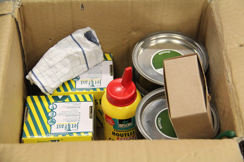Het doel van deze lading planken is het maken van martervrije Steenuil kasten, een project voor 2015. Han had reeds voorwerk gedaan door thuis zelf een Steenuilen kast in elkaar te zetten als voorbeeld.