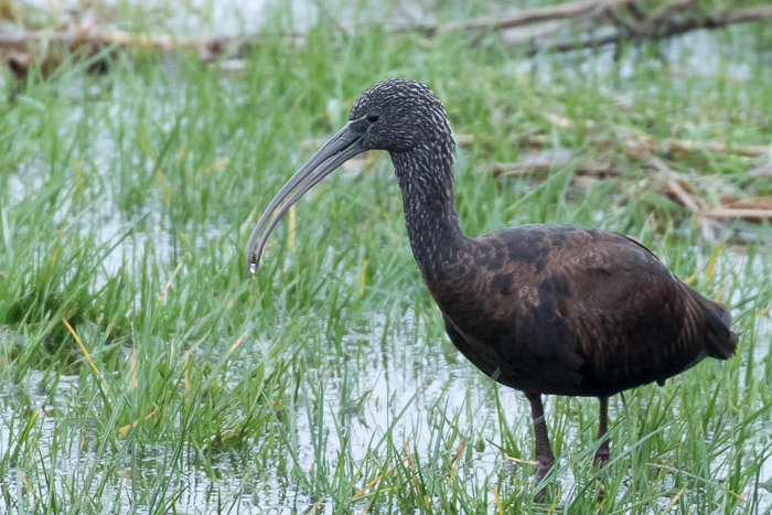 Deze Zwarte ibis beproeft zijn geluk op de Ommermars met een koude winterweek in aantocht.