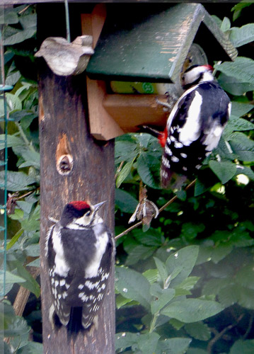2 spechten bij mijn voederhuis.