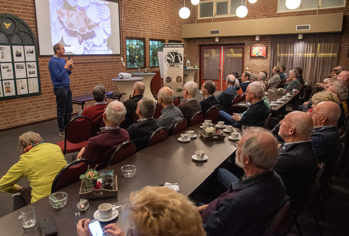 In zijn presentatie worden de diverse stadia van een aantal groepen van nachtvlinders besproken en Verburg weet met zijn prachtige foto's de ruim 50 bezoekers te imponeren. Met name de soms prachtige kleuren van de nachtvlinders ontlokken menig bezoeker bewonderende uitroepen.