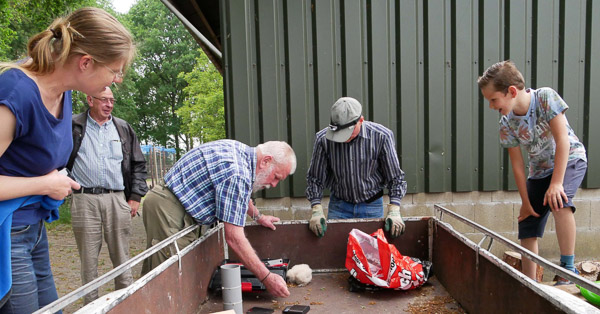 Han kan de kerkuiltjes bij deze familie ringen op een aanhangwagen. Deze familie heeft behalve kerkuilen ook ransuilen in de buurt. Ze laten het geluid van de ransuil horen welke ze midden in de nacht hebben opgenomen. Dit gebied blijkt dus een ideale biotoop voor uilen!