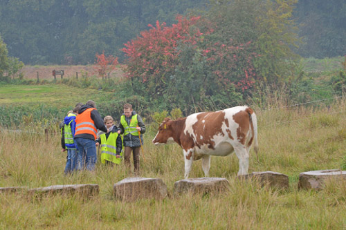 Het geheel ziet er allemaal prachtig uit en dus werden we gedreven het terrein over te lopen tot aan de Vechtoever. Dat bleek een goed plan want al wandelend langs de oever was hij daar opeens: de Visotter. Voor mij de eerste waarneming van de Visotter in het wild en voor Machteld de tweede Visotterwaarneming sinds 40 jaar.