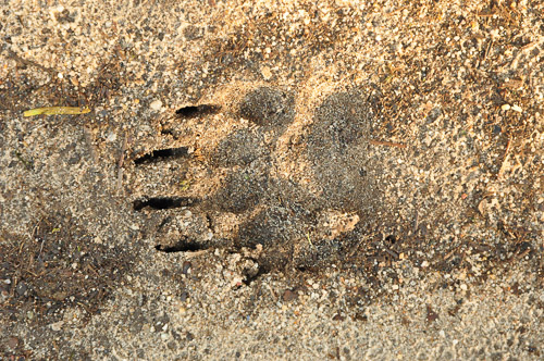 Wij organiseren op zaterdag 11 februari a.s. weer een excursie: 'Speuren naar Sporen'. Iedereen kan, onder begeleiding van boswachter Arend Spijker, op zoek naar dierensporen. Hij neemt deelnemers mee naar de vaak verborgen sporen van dierlijke activiteiten. Van welk dier zijn deze pootafdrukken?