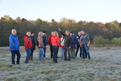 Welgeteld veertien natuurliefhebbers waren vroeg opgestaan om op Hemelvaartsdag met natuurkenner Evert Ruiter door het Arriër Koeland te trekken. Slechts een enkel lid van onze vereniging was daarbij; de anderen kwamen uit bijvoorbeeld Enter, Groningen en Utrecht. Om 6.00 uur vertrok het gezelschap om na een korte wandeling door het bos, waar de vogels goed hun best deden om de deelnemers te plezieren, aan te komen op het ongerepte Arriër Koeland. Ondanks het feit dat de zon scheen, was het fris: de grassprieten waren nog stijf bevroren.