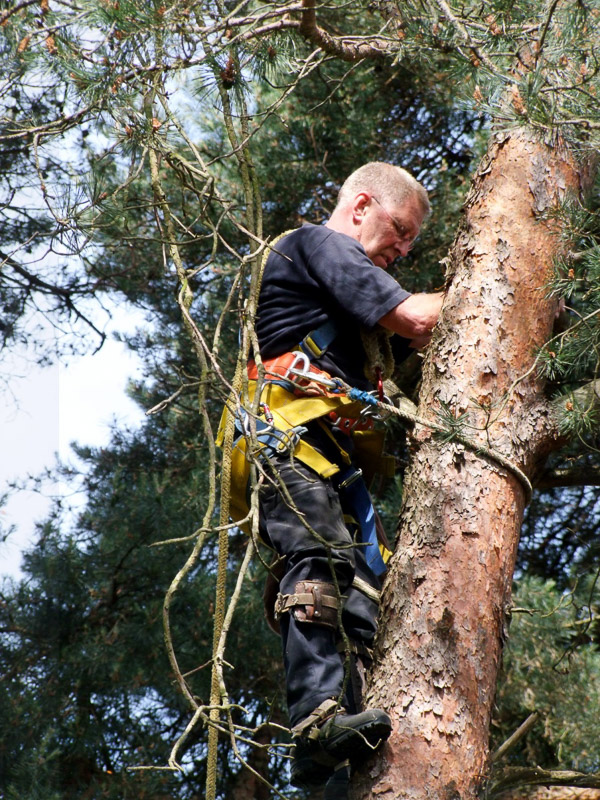 Uiteraard is het noodzakelijk dat er een volleerd klimmer meegaat. Wouter Thijs Nijhuis uit Ommen is zo iemand: hij kent de klimtechniek als geen ander, omdat Wouter Thijs Nijhuis een jonge ondernemer is, die zich vooral richt op groenverzorging. Hij houdt zich voornamelijk bezig met de aanleg en het onderhoud van tuinen, bestrating en boomverzorging. In de boomverzorging is het nogal eens nodig hoog boven de grond werkzaamheden te verrichten in de kroon van een boom. Wouter Thijs klimt dan ook als een aap naar boven. Hij heeft tevens de perfecte klimuitrusting!