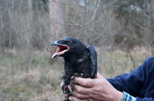 Bij onze Vogelwerkgroep trekken leden, waaronder Gerbrand Groen, er regelmatig op uit om te kijken of er weer Raven broeden en of er nog nieuwe nestlocaties zijn. Als er jongen zijn en deze groot genoeg zijn om te ringen, komt het vaste ringteam in actie, zodat de jongen geringd kunnen worden.