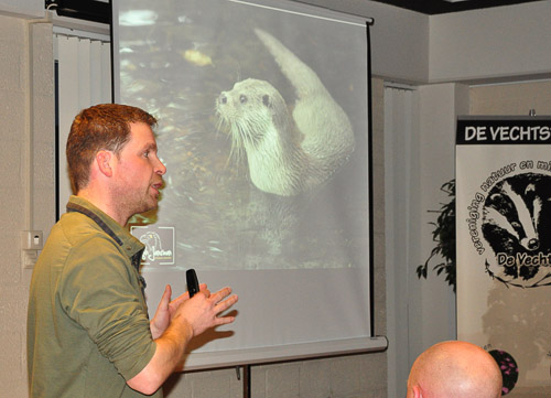 Het zaaltje in de Carrousel zat goed vol op 19 februari. Zo'n 55 mensen waren afgekomen op de lezing die otterspecialist Hugh Jansman hield over de visotter. Met veel passie en kennis nam Hugh ons mee in de wereld van dit bijzonder dier, dat volgens Jansman helemaal hoort bij Nederland-waterland. De otter is het grootste landroofdier van Nederland en was er in de jaren '80 vrijwel uitgestorven. Gelukkig nog voordat de otter echt uitstierf, waren er al inspanningen om dit watervlugge dier te herintroduceren. In 2002 werden er dieren uitgezet in Natuurgebied Weerribben-Wieden, afkomstig uit o.a. Letland, Wit-Rusland, Polen en Tsjechië. Die doen het hier buitengewoon goed, zelfs beter dan verwacht, al is de balans tussen voortplanting en sterfte nog steeds precair.