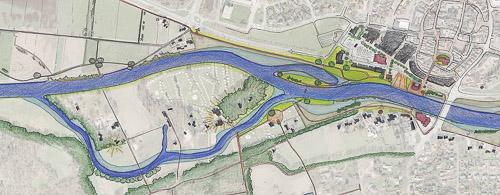Schetsontwerp zuidelijke nevengeul bij centrum Ommen (uit: Ruimtelijke verkenning Vechtoevers Ommen, gemeente Ommen)