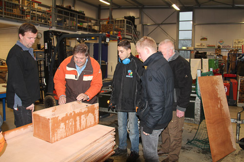 Ondertussen zijn de leerlingen van het ATC druk aan het werk met het maken van steenmartervrije nestkasten. Vanmorgen heb ik een kijkje genomen bij het ATC om te zien hoever de nestkasten al gevorderd zijn. Tot mijn grote verbazing zijn ze al bezig met de afwerking! Daar had ik echt nog niet op gerekend! De jongens waren tijdens mijn aanwezigheid zeer zorgvuldig en geconcentreerd bezig met het afwerken van de nestkasten onder leiding van leerwerkmeester Frank Wopken. Iedereen heeft zijn eigen taak bij de werkzaamheden.