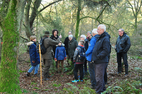 Een mooiere speurtocht, zeker wat het weer betreft, hadden de deelnemers aan de excursie Speuren naar Sporen, zich niet kunnen wensen. Niet te koud, beetje zon erbij, heerlijk om een middag in de natuur door te brengen. Een groep van zo'n 15 in sporen geïnteresseerden verzamelde zich zaterdag 6 december aan het eind van de Achteresweg om met boswachter Arend op pad te gaan. Gelukkig waren er ook kinderen bij - fijn om te zien, dat ook de jeugd zich interesseert voor de natuur. Er waren zelfs twee kinderen bij uit Venlo, die op bezoek waren bij oma. Het is altijd weer een verrassing wat er onderweg gevonden wordt en het is ook spannend om dwars door het bos te lopen, iets wat normaal gesproken niet mag. Er waren nog wat paddenstoelen te zien, waaronder een stuifzwam, die zijn naam nog steeds eer aan deed. Verder uitwerpselen, afgekloven botjes, een rustplek van een ree, veertjes, wildwissels en allerlei zaken waar je normaal gesproken geen oog voor hebt. Arend maakte ons op al die verborgen sporen attent. Op het Junner Koeland waar vele jeneverbessen staan - de enige boomsoort die in Nederland op de Rode Lijst staat - kwam een betoverende mist opzetten. Met de al vroeg ondergaande zon erbij kreeg het toch al zo mystieke landschap een nog sprookjesachtiger karakter. Iedereen genoot van wat de natuur voor ons die decembermiddag in petto had!