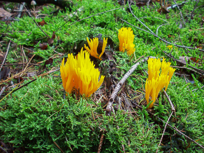 Kleverig koraalzwammetje (Calocera viscosa) in Karshoek (Stegeren) (foto Hein Kuijper)