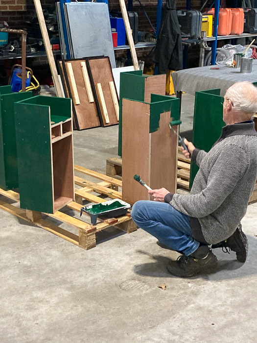 Uiteraard moeten de woningen er gelikt uitzien! Dus kwam Fred van der Lans alle nestkasten verven zodat ze er mooi uitzien en bestand zijn tegen weer en wind.